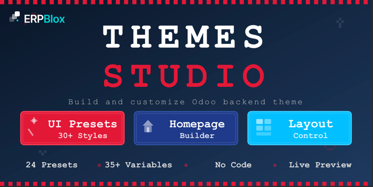 30+ carefully crafted visual presets to transform your Odoo interface instantly